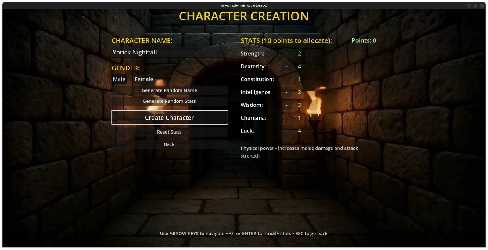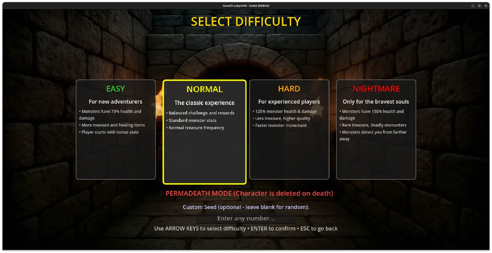 Goxod's Labyrinth is a dark-fantasy, retro-style dungeon crawler built in Godot 4.5, blending classic roguelike exploration with modern UI and systems.